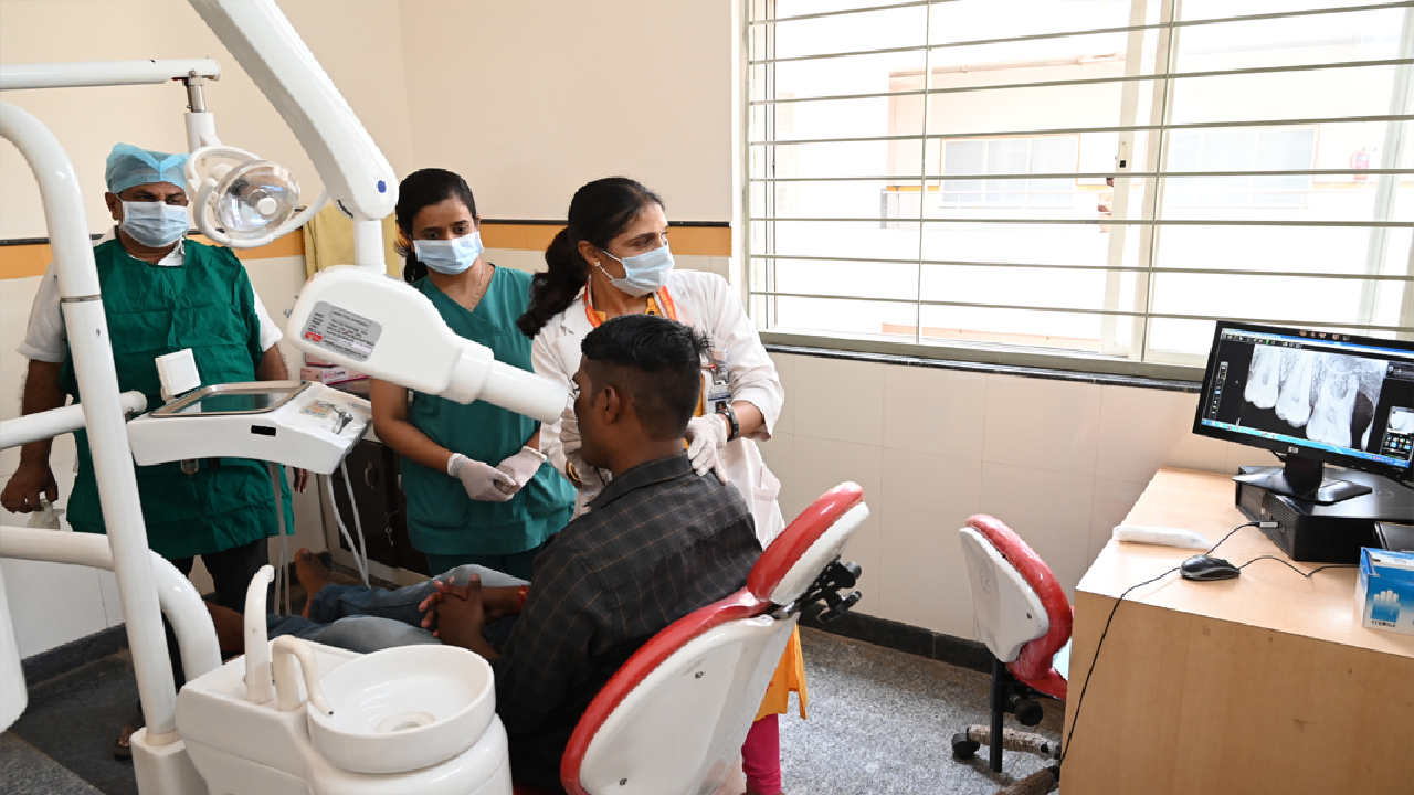The Department has both UG and PG sections with well equipped dental chairs, latest surgical equipments and teaching aids. A good number of patients seek surgical therapy in the department. Highly skilled faculty provides training to UG and PG in academics and clinical modalities such as scaling, root planning. curettage and surgeries like periodontal flap surgeries, gingevectomy, operculectomy, frenectomy, abscess drainage, corticotomy, root resection, hemisection and bicuspidisation. Regenerative procedures include bone grafts, guided tissue regeneration, bone regeneration with PRF, PRP, I-PRF, A-PRF, and Perio-plastic surgeries like depigmentation, crown lengthening ,root coverage by soft tissues grafts are performed in the department. This department encourages research activities, and conducts surveys at all levels. Advanced surgical modalities like LASERS, electrocautery and implants are provided in the department. “Beautiful smile with healthy gums and healthy bone” is the motto of this department.