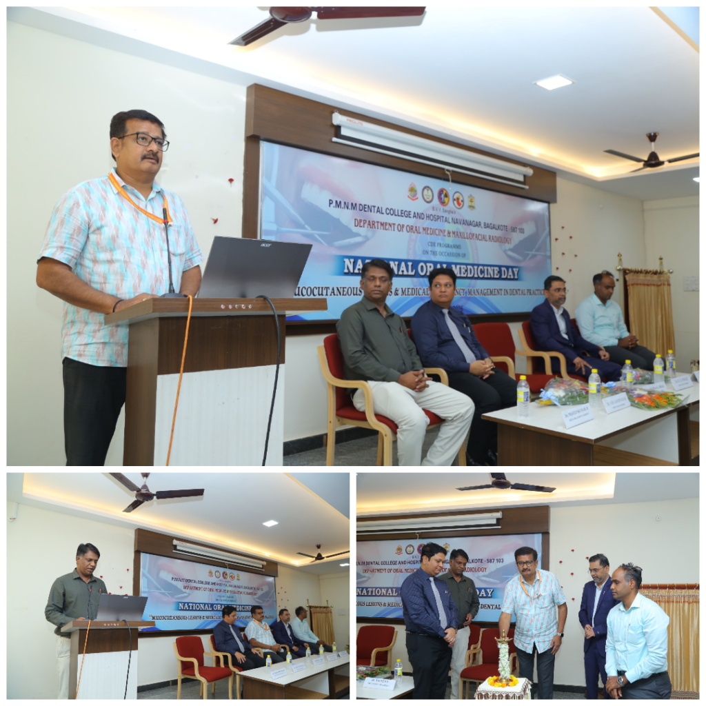 The Department of Oral Medicine & Radiology celebrated National Oral Medicine Day on 27th April 2026. On this occasion, the department organized a one-day CDE (Continuing Dental Education) program on “Mucocutaneous Lesions and Medical Emergency Management in Dental Practice.” The sessions were delivered by eminent speakers, Dr. Balachandra Ankad, Professor & Head, Department of Dermatology, SNMC Bagalkote and Dr. S M Gooranavar, Professor, Department of General Medicine, SNMC Bagalkote.